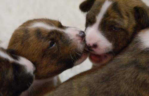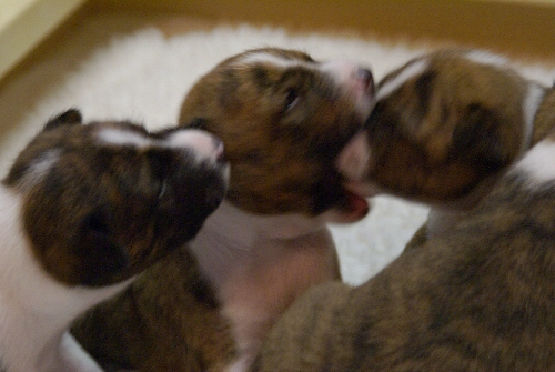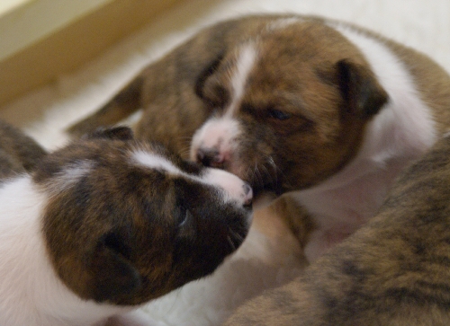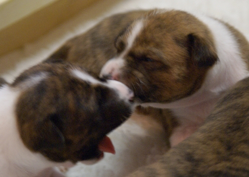 Und noch ein paar Gruppenfotos :) v.l.n.r. Ebo, Embayo, Thabo begraben & King-Efe von vorne: Ebo, Embayo, Thabo & King-Efe Welpenhaufen *g* Und Gruppenkuscheln :) Ebo GÄÄÄÄÄHNT... ... und Embayo küsst :) Hilfe! Embayo frisst King-Efe & Ebo guckt bloß zu! Ebo auf King-Efe *herzchen* "Hallo du!" Begeistert gucken ist was anderes, Efe ;) Ich habe nicht alle Einzelfotos eingestellt, Da die Kleinen ihre Augen erst vor Kurzem geöffnet haben, |