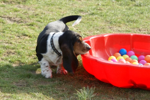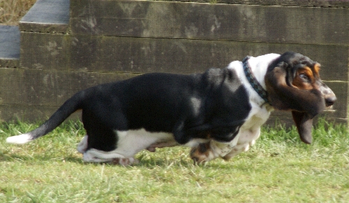 Die 2 süßen Border Collie Mädchen sind Schwestern... Slalom-Versuch mit kleinem Herrchen :) Basset Hugo - eine Marke für sich: Hugo setzt sich in