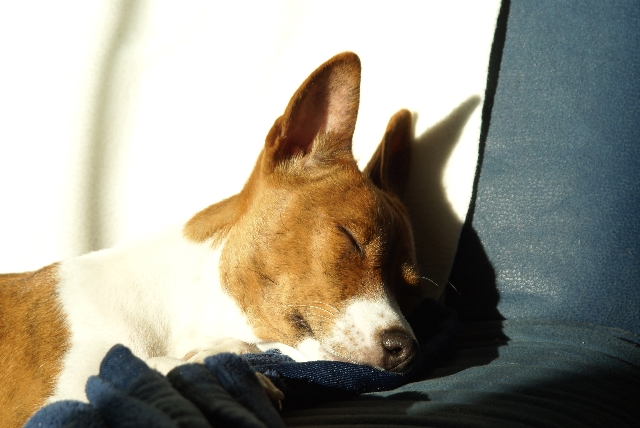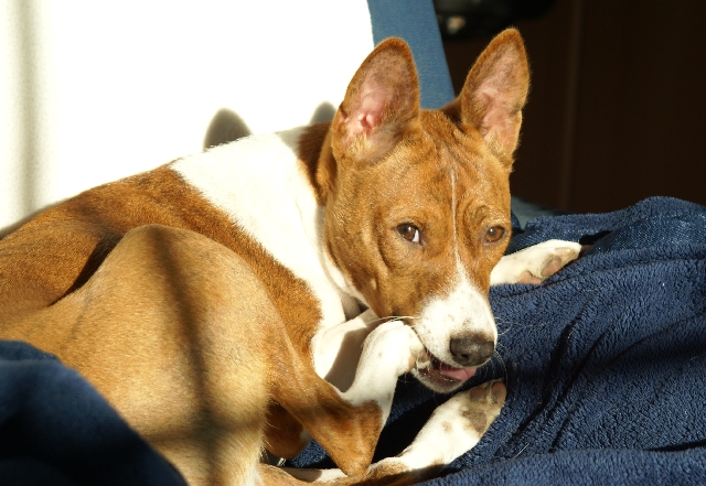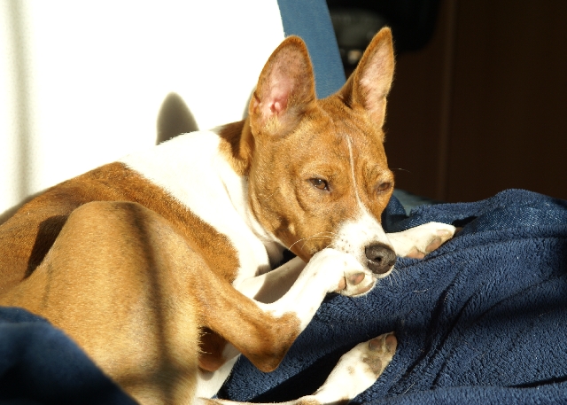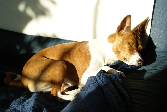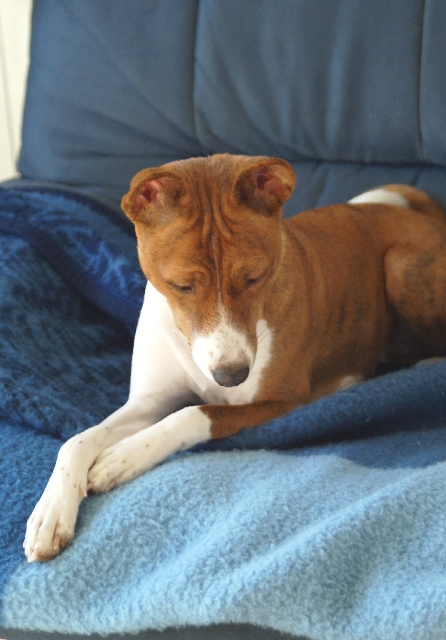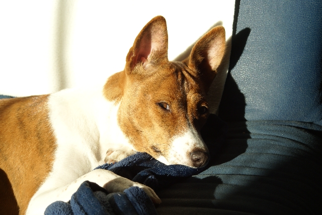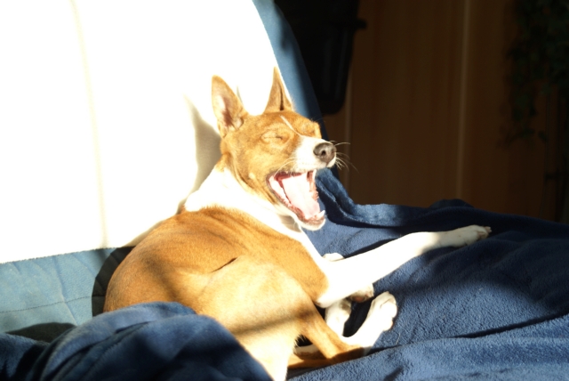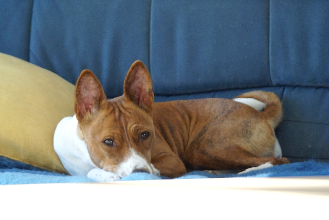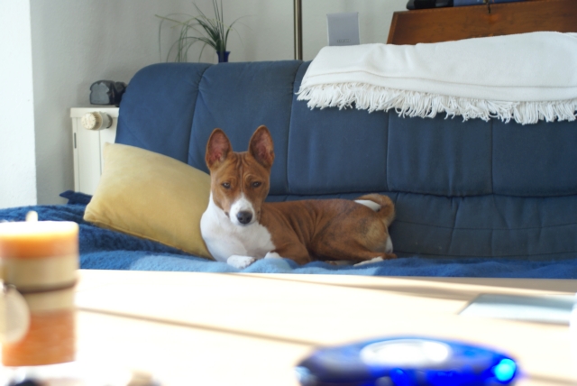 haben?! Basenjis haben nämlich auch ein Recht auf (viel) Schlaf! Wohin denn jetzt? Im Körbchen finden sie mich vielleicht nicht... Oh! Dabei war's so schön auf dem Sofa... Kommt da wer? Geht's jetzt raus? |