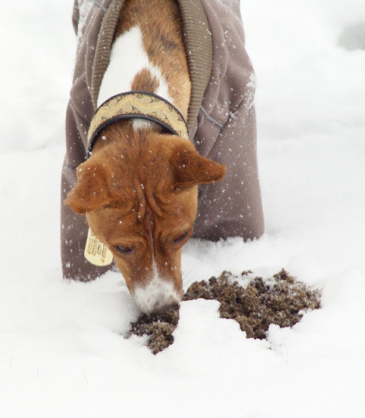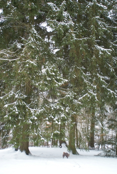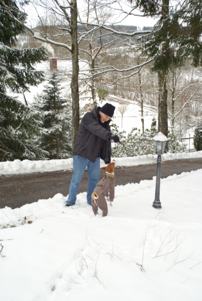 Da sieht man erstmal, wie groß die Bäume Was entdeckt... ... und zupacken! Neeeiiin - Matthias hat Zuri NICHT mit Schneebällen beworfen! Empörter Blick *hüstel* Schnee ist eine schöne Leinwand :)