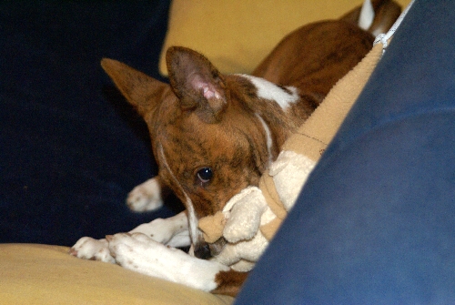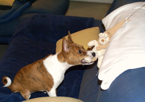 "Attacke!!!" Festhalten ... ... umdrehen ... ... und versuchen wegzuschleppen :))) Mit viel Mühe auf die Couch! Tolle Beute! "Wer stört denn jetzt schon