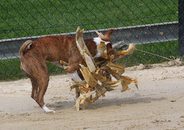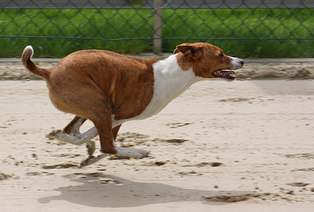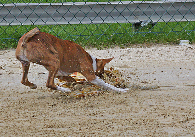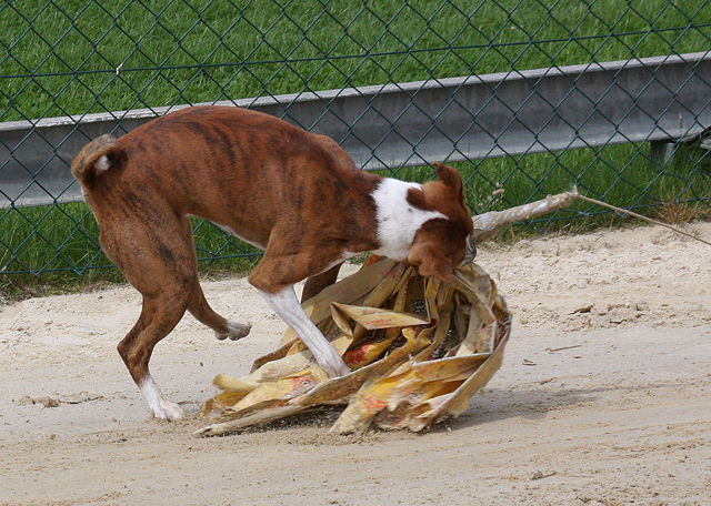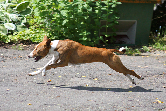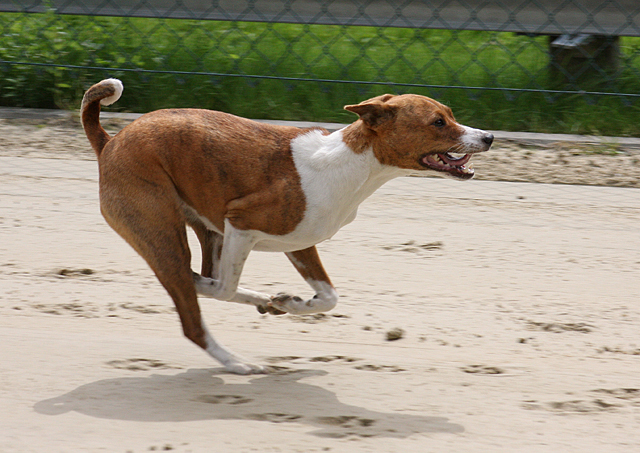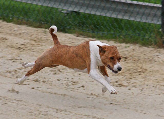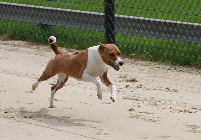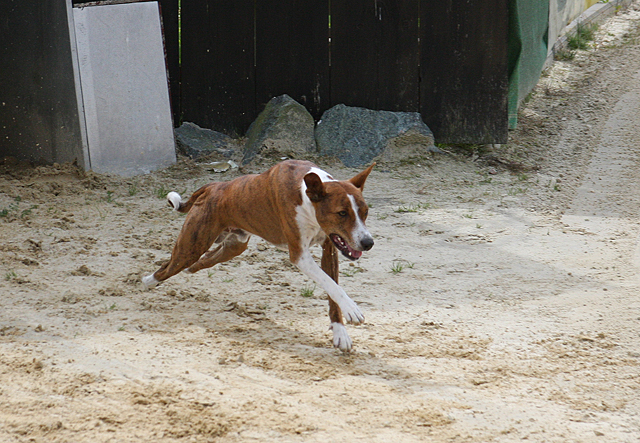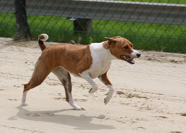zahlreiche Basenjis jagten ums Feld.