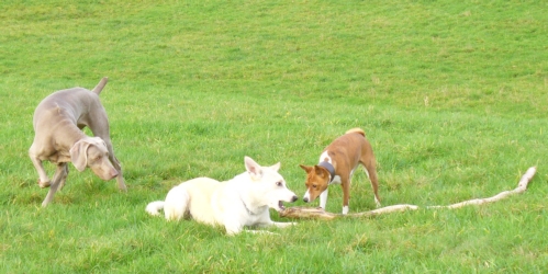 So hatten Zuri, Dojo und Peony viel Spaß beim Toben (und Buddeln...).