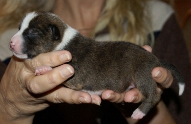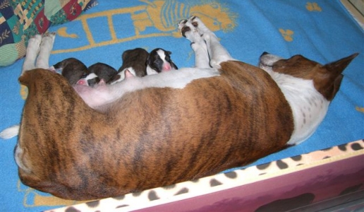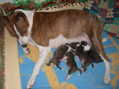 Alle 4 sind brindlefarben und Mutter und Welpen wohlauf!