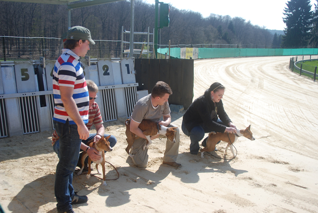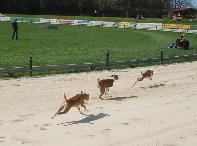 Bei ziemlich perfekten Temperaturen sind 11 Basenjis über die Bahn